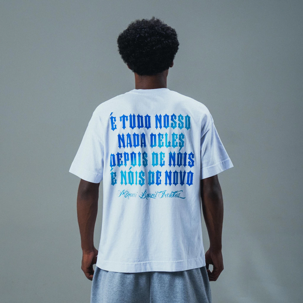 A clássica camiseta “Tudo Nosso” resgata uma das frases que mais marcaram a história da Minacci. Ícone desde os primeiros drops, ela retorna agora como uma das peças mais aguardadas do Relikias, carregando o peso da nossa trajetória e a energia da tropa.